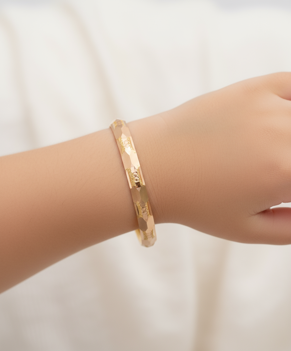 أضيفي لمسة رقيقة من الجمال العربي الأصيل إلى معصم صغيرتك مع بناجر “عيون المها” المصنوعة من الذهب الأصلي عيار 21.