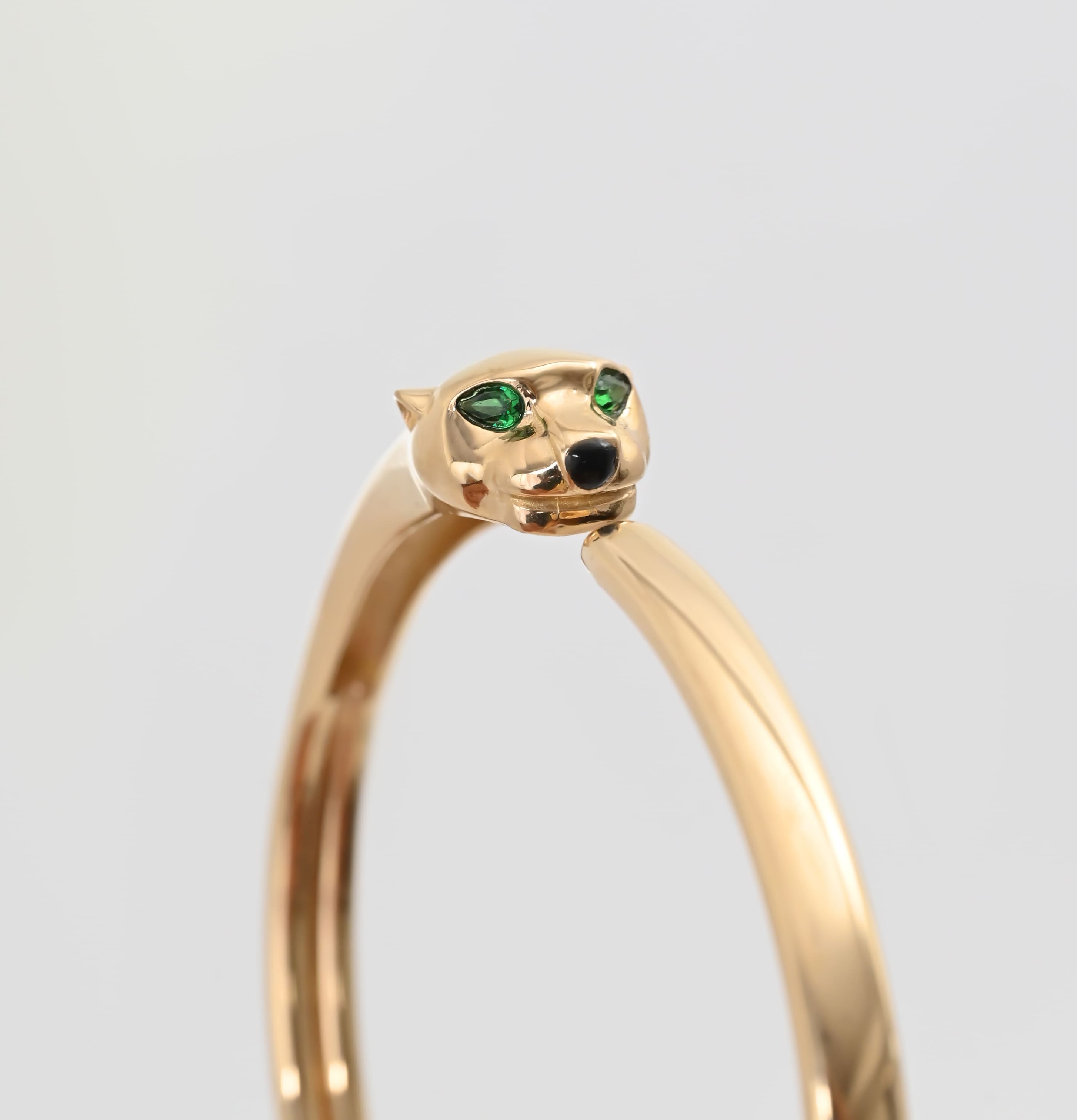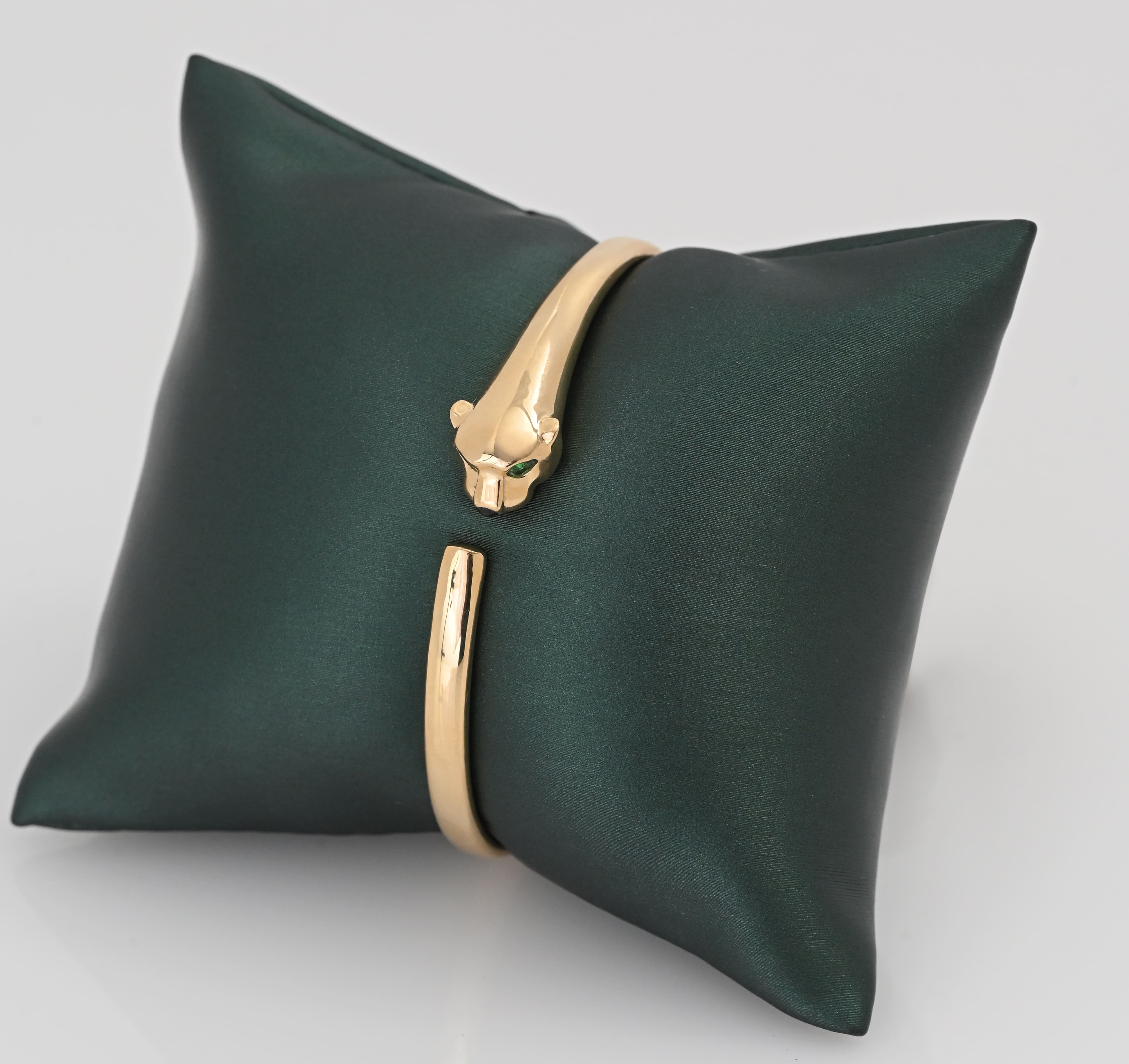 يتميز بتصميم رأس الفهد الأيقوني المرصّع بحجر زمردي اللون يمنحه لمسة من الفخامة والتميز.